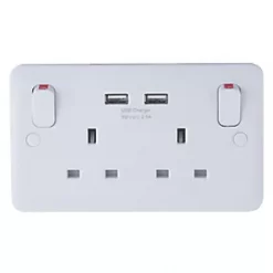 Schneider Electric Lisse 2.1A 2-Gang SP Switched Socket + 2.1A 2-Outlet Type A USB Charger White