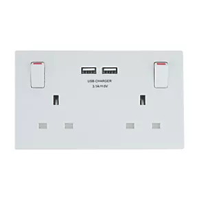 British General 900 Series 13A 2-Gang SP Switched Socket + 3.1A 2-Outlet Type A USB Charger White