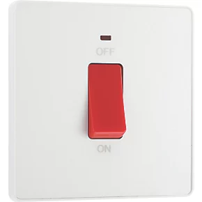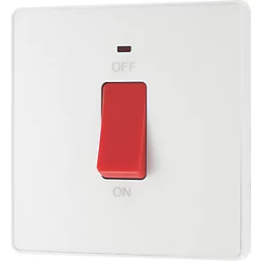 British General Evolve 45A 1-Gang 2-Pole Cooker Switch Pearlescent White with LED with White Inserts