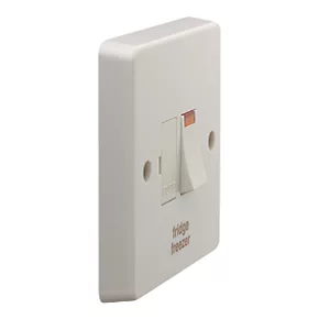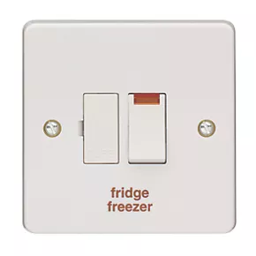 Switched fused connection unit 13A double pole with neon indicator. Marked “Fridge Freezer”.