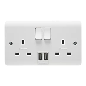 Crabtree Instinct 13A 2-Gang DP Switched Socket + 2.1A 2-Outlet Type A USB Charger White