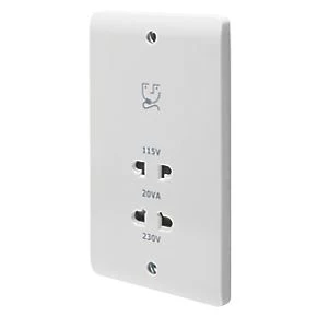 Crabtree Instinct 2-Gang Dual Voltage Shaver Socket 115 / 230V White