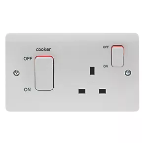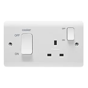 Crabtree Instinct 45A 2-Gang DP Cooker Switch & 13A DP Switched Socket White with LED