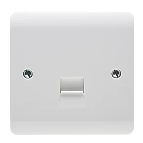 Master telephone socket with a stylish slim faceplate with curved top and bottom edges. Monobloc design gives a sleek appearance and retains the plate integrity.