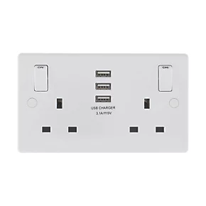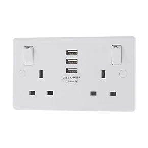 British General 900 Series 13A 2-Gang SP Switched Socket + 3.1A 2-Outlet Type A USB Charger White