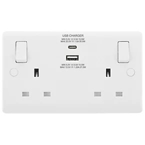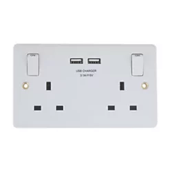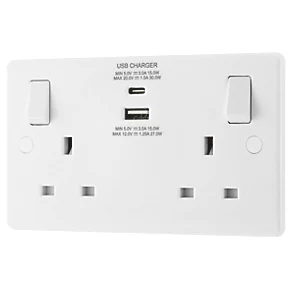 British General 800 Series 13A 2-Gang SP Switched Socket + 3.1A 2-Outlet Type A USB Charger White