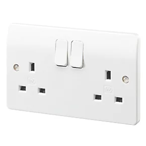 MK Logic Plus Rapid Fix 13A 2-Gang DP Switched Socket White with White Inserts