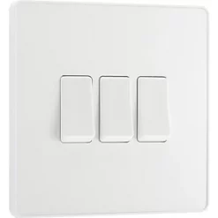 British General Evolve 20 A 16AX 3-Gang 2-Way Light Switch Pearlescent White with White Inserts