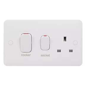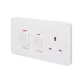 Schneider Electric Lisse 45A 2-Gang DP Cooker Switch & 13A DP Switched Socket White with LED