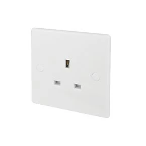 Slimline, curved profile 1-gang 13A unswitched socket.