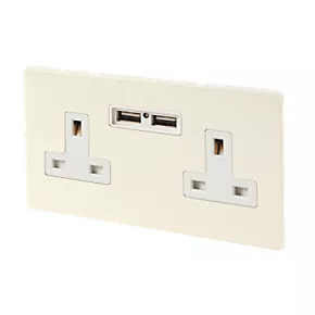 Varilight 13AX 2-Gang Unswitched Socket + 2.1A 2-Outlet Type A USB Charger White Chocolate with White Inserts