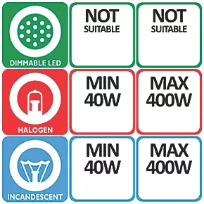| Min. Dimmable Load (Incandescent) | 40 W |
